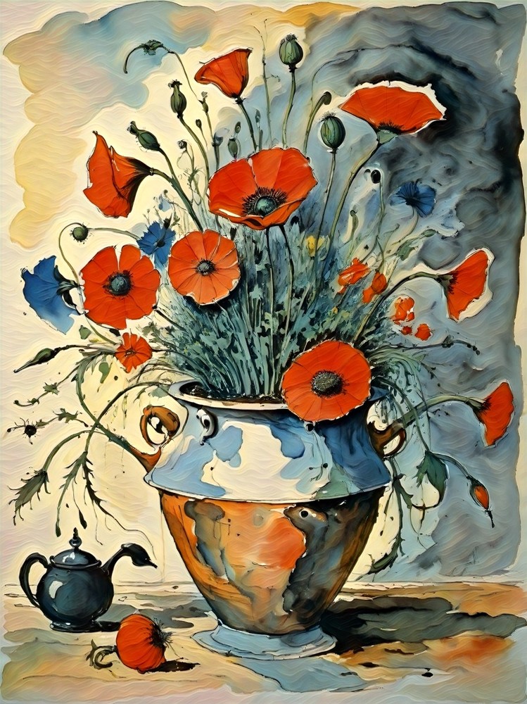 Poppy flowers in a pot, dream.ai and Painnt \#Aug24c